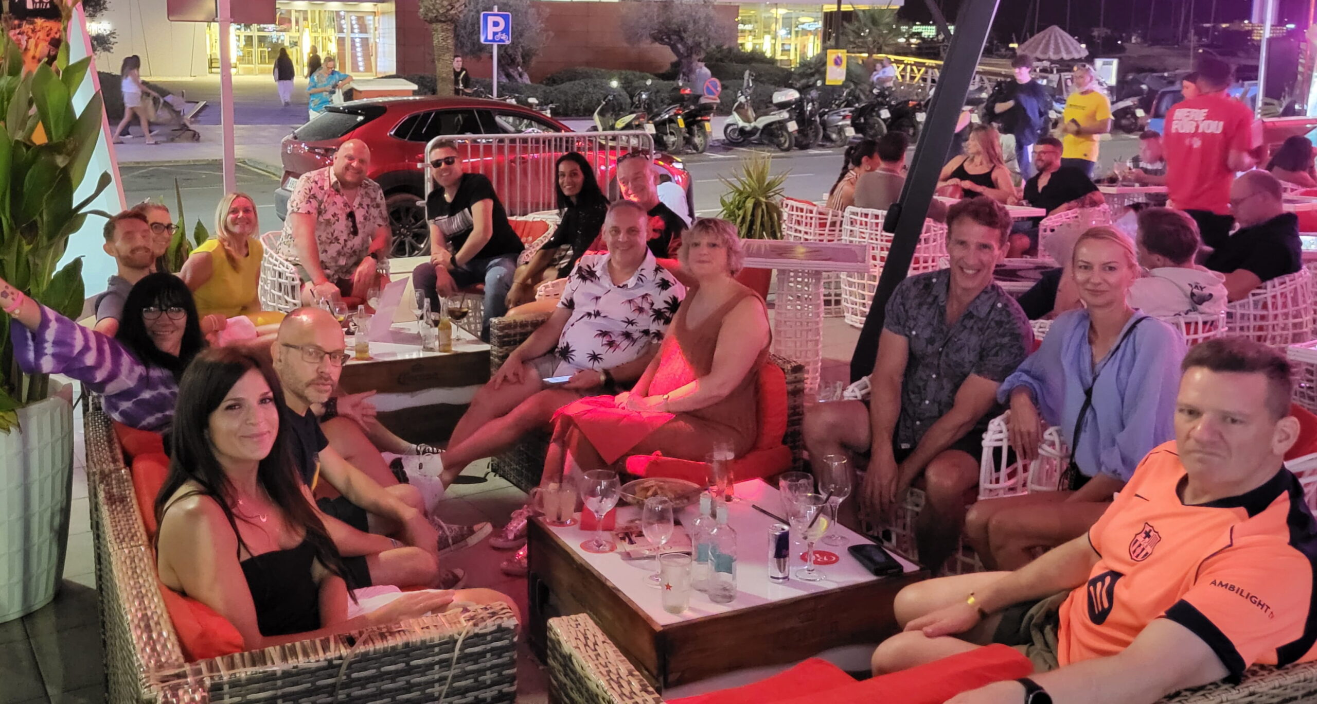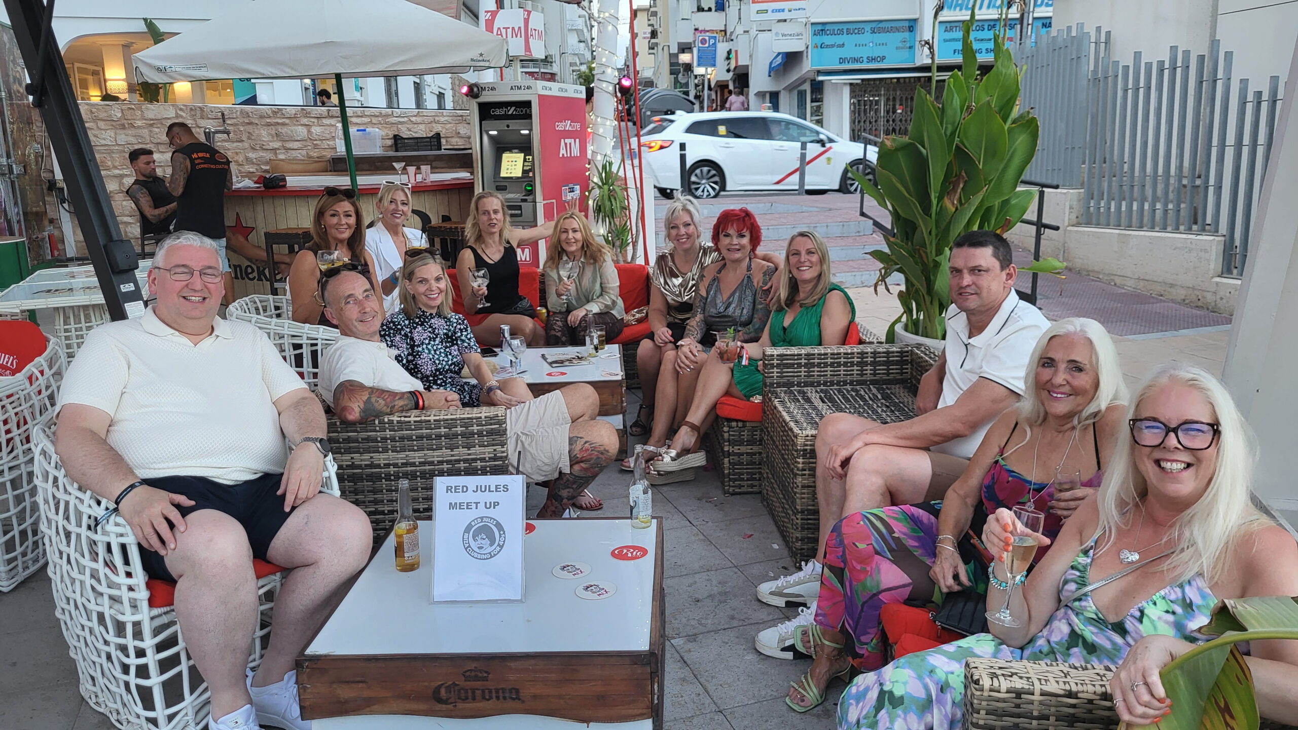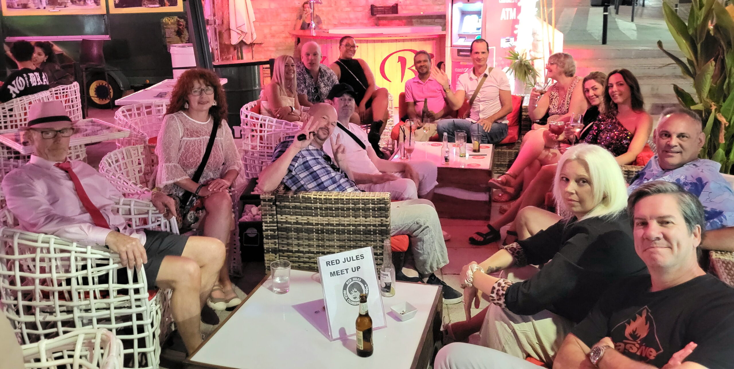 Weekly meetups are at Rio Ibiza and Flaherty’s Irish Bar in San Antonio. The group meets in Rio Ibiza on the downstairs terrace area, on the red sofas. At Flaherty’s Irish Bar they meet on the large tables to the right of the bar.