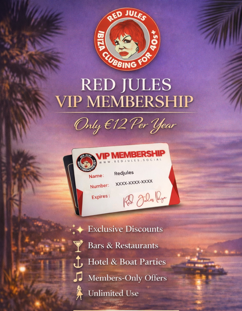 Join for just €12 per year and unlock exclusive DISCOUNTS with Red Jules in San Antonio, Ibiza.