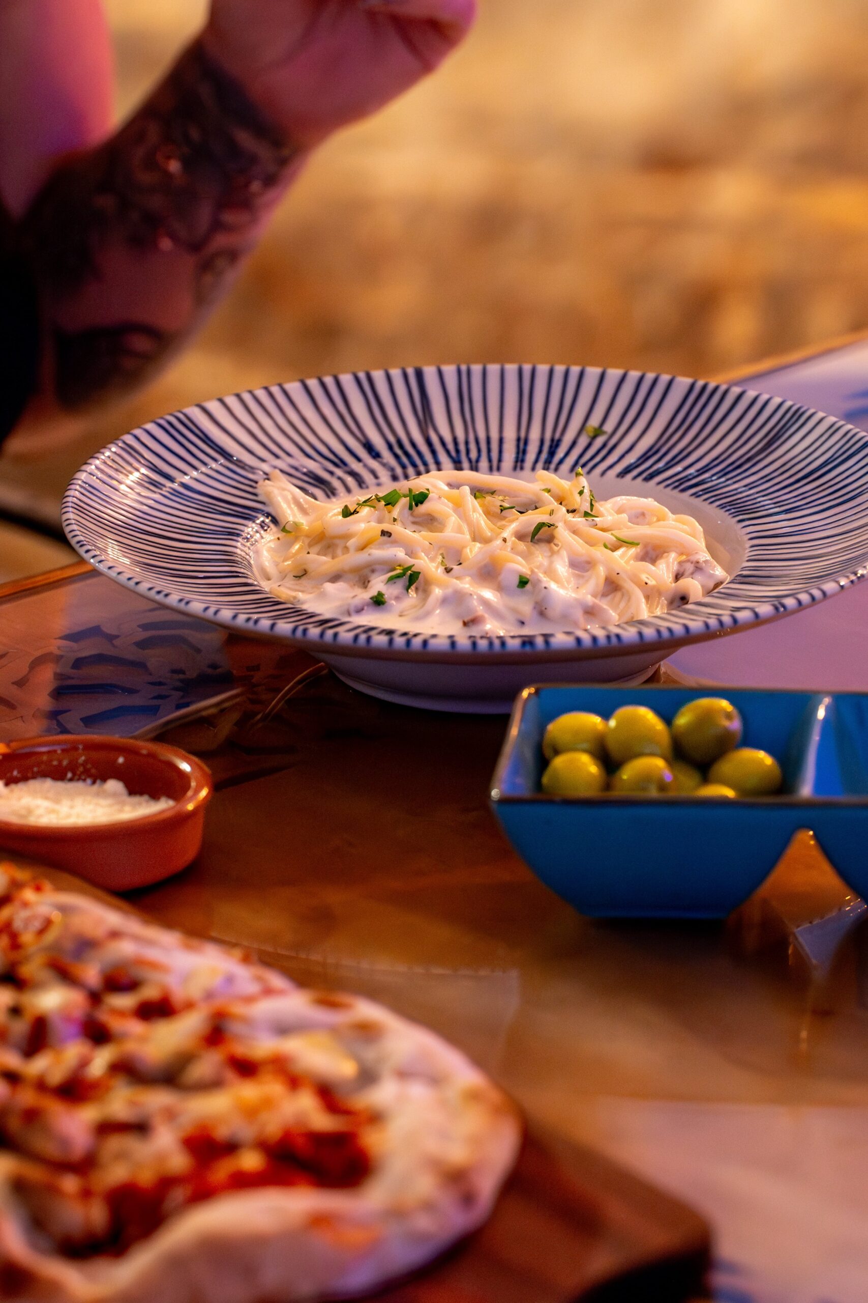 Our menu is a true fusion of Arabic and Mediterranean cuisine, where every dish, even the most classic Mediterranean ones, are infused with an Arabic twist. Guests love our slow-cooked lamb shoulder, fragrant paella, fresh pastas, and expertly grilled fish, all enhanced with bold spices and rich aromas.