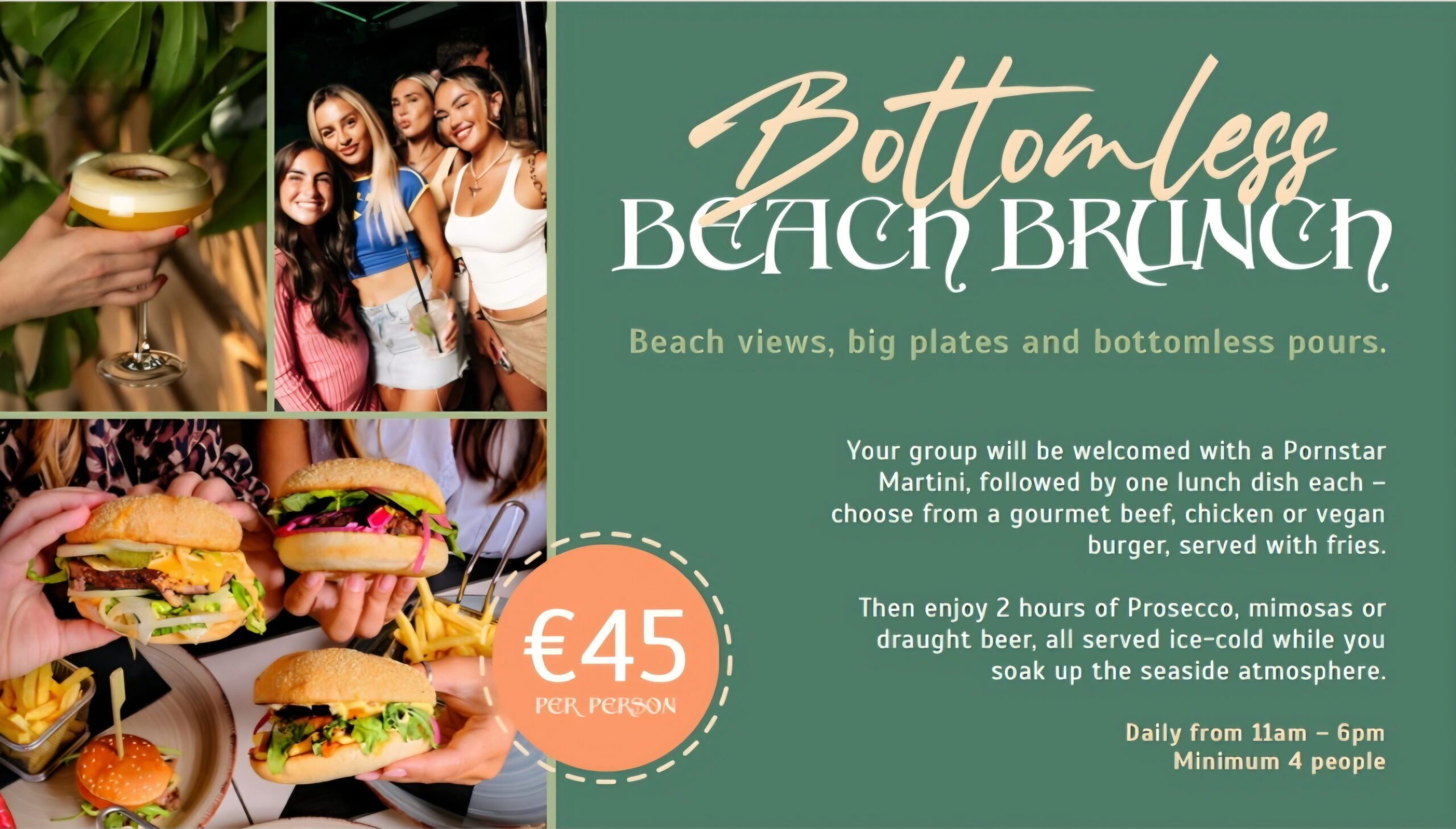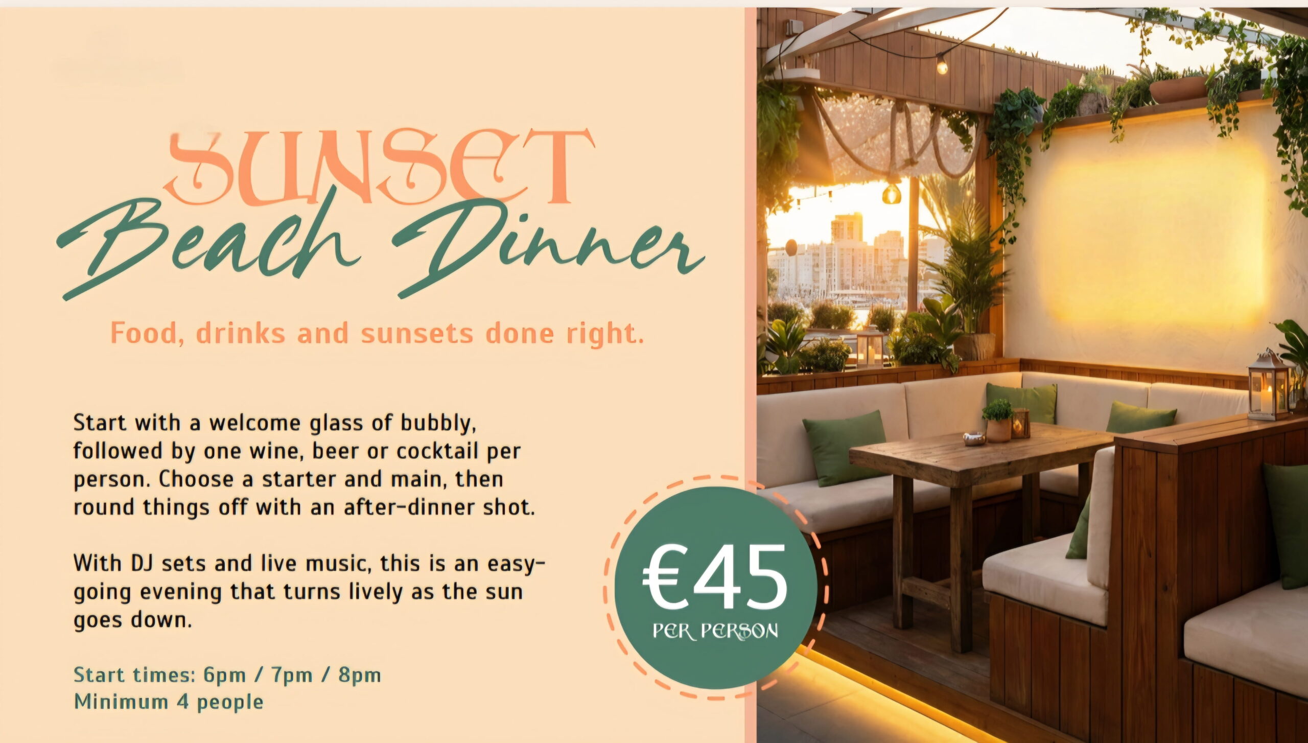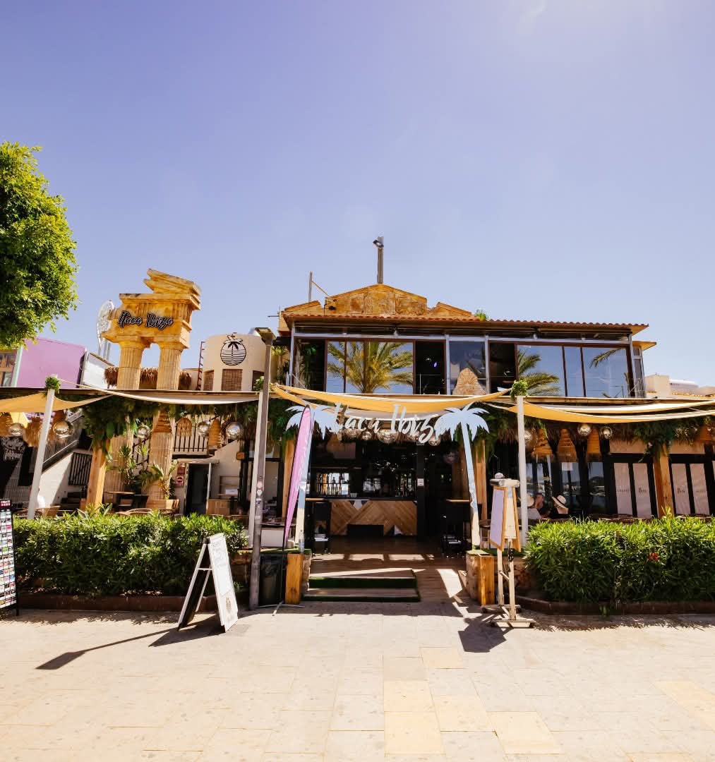 Ítaca Beach Club is one of San Antonio’s longest-standing spots and the venue is steeped in island history. Creating a sense of the old days by bringing people together for no-fuss good times that include dining, drinking, and dancing—all with gorgeous sea and sunset views. Enjoy a relaxed vibe with uninterrupted views of the stunning S’Arenal waterfront on the sunny outdoor seating area. It’s a perfect spot to watch the sun go down and the world go by. Ítaca’s events calendar has great entertainment for every night of your Ibiza trip with resident & guest DJs bringing the dance floor to life, spinning party-ready music until the early hours. Choose from the rooftop restaurant or boho, beachside terrace and dine al fresco. Throughout the day they offer a varied cuisine including British home comforts, like Bangers and Mash and dishes from the North and East of Asia not to mention imaginative salads, stacked burgers in brioche buns, and more. With an extensive cocktail list, smoothies, frappes, mocktails, premium spirits and a great choice of beers, wine and soft drinks available there’s plenty of choice. Book one of the brunch or dinner packages below and you can enjoy a reserved table/Booth at our sister venue Irish Beach Ibiza. At Irish Beach you can enjoy DJ sets & live music. It’s the perfect place to go for sunset vibes.