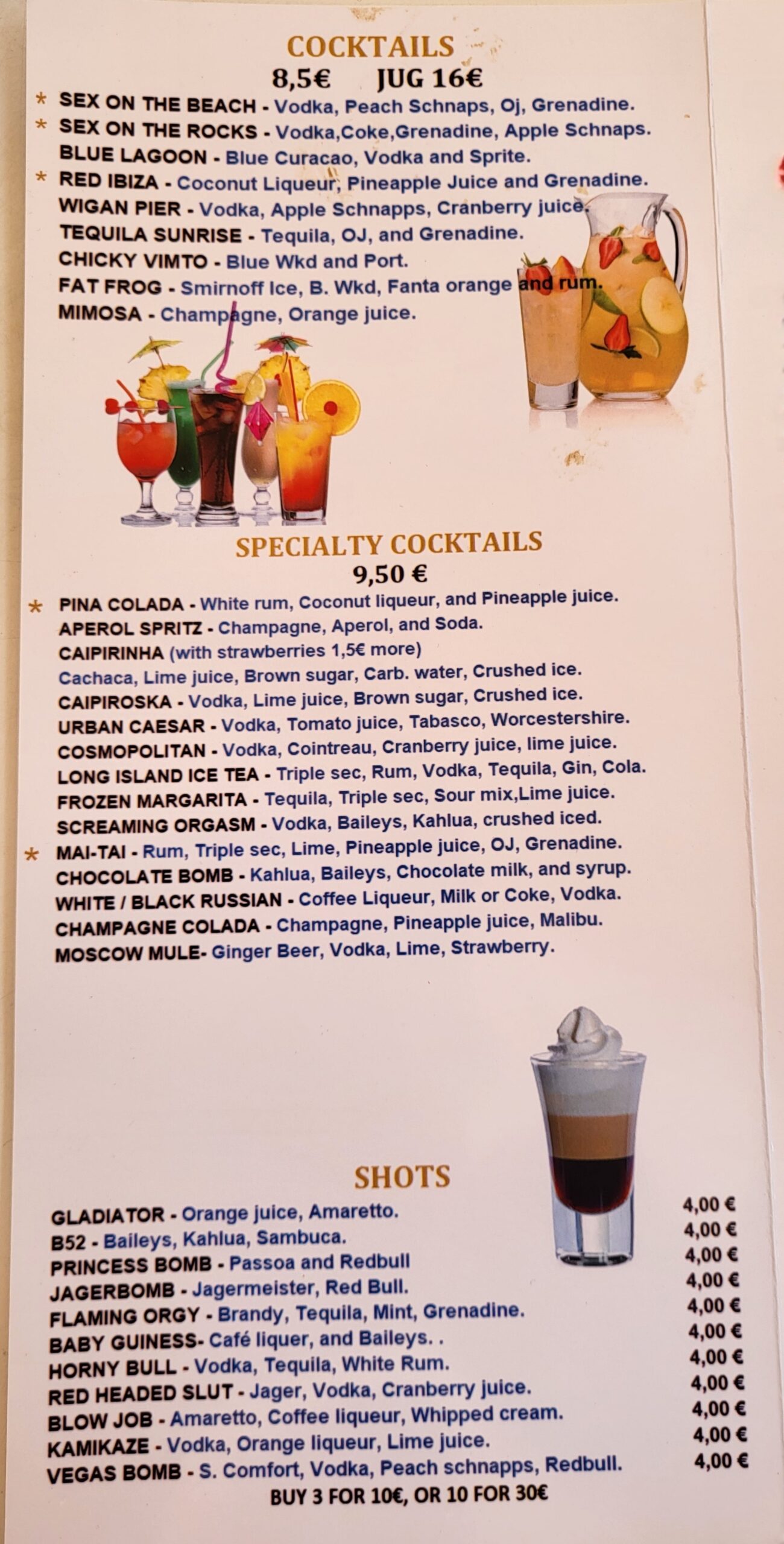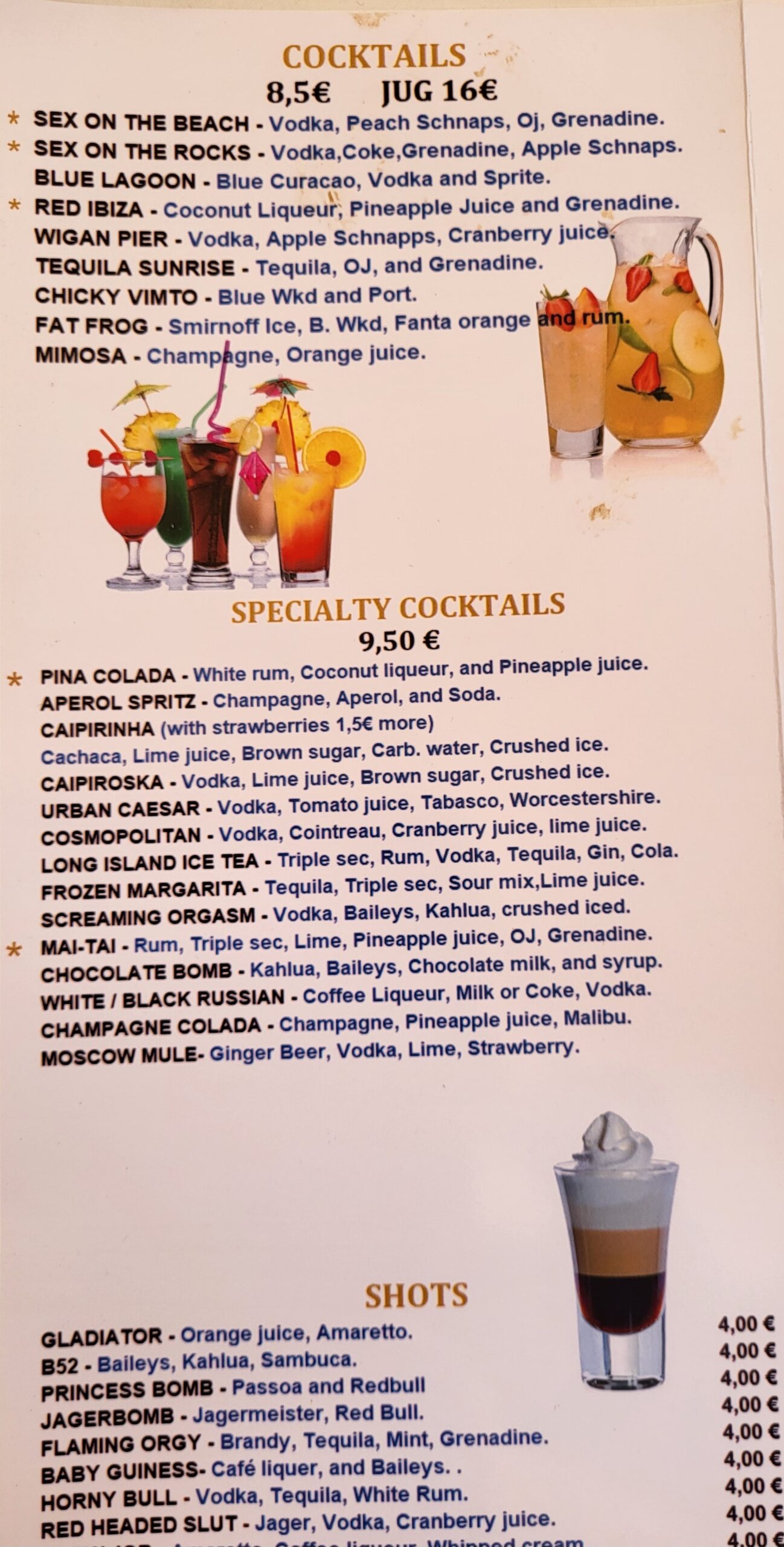 The extensive cocktail menu makes it hard to decide which one to choose and with prices starting from only €8.50 it won’t break your budget to try a few!