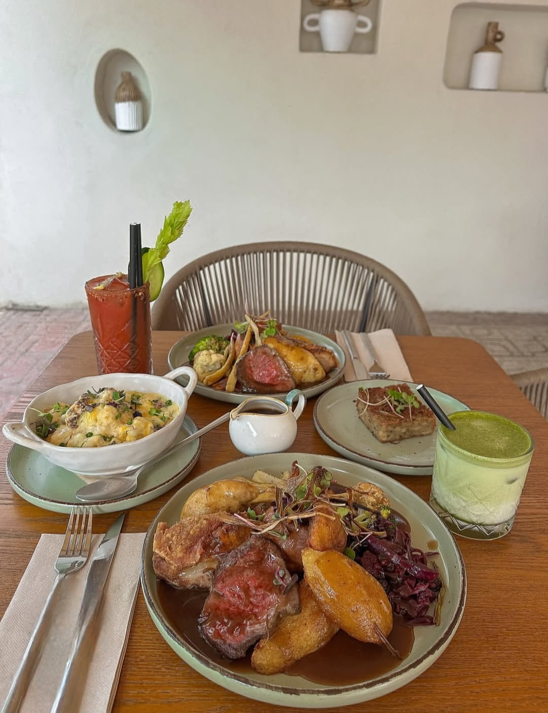Vitamin Sea is located on the Es Pouet beachfront, at the lower end of San Antonio Bay. Inside you’ll find a beautifully styled space. Think soft beige and sand tones, natural wood, rattan details and boho-inspired décor. There’s a spacious indoor area with an easy-going atmosphere and a sunny outside terrace. With an extensive menu featuring Egg Benedicts, smoothies, protein shakes, lattes, detox teas, açaí bowls, salads, avocado toast, bagels with cream cheese and salmon, blueberry pancakes, banana bread, and more! They’re also open during the winter season (with adjusted opening hours). Winter Menu NEW Winter Special: Jerk Chicken Sunday Roast – the perfect weekend comfort. Thursday – Saturday: Turkish & Greek fusion Menu Bookings now open — reservations recommended, especially for Sunday Roast.For more info & reservations