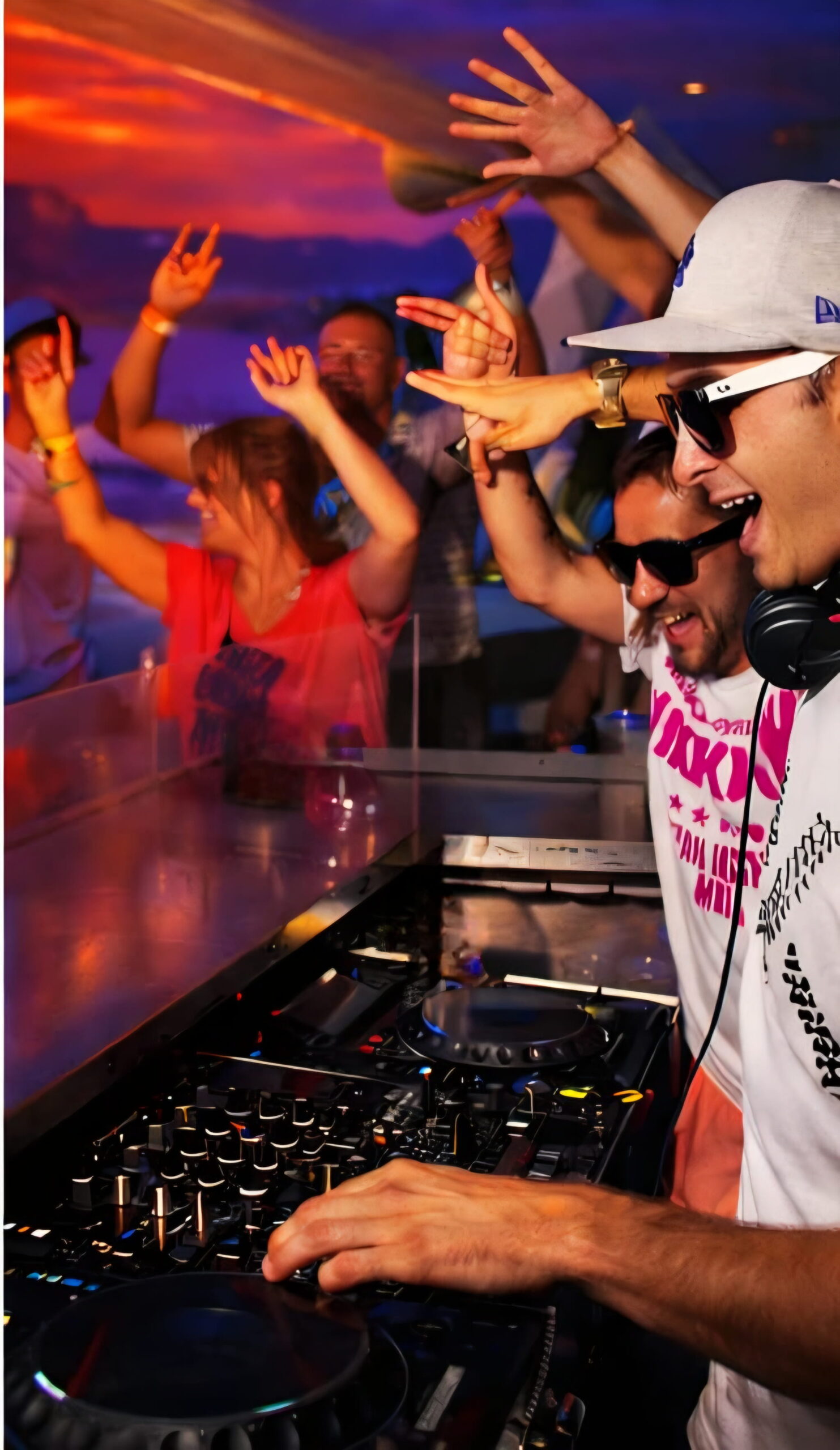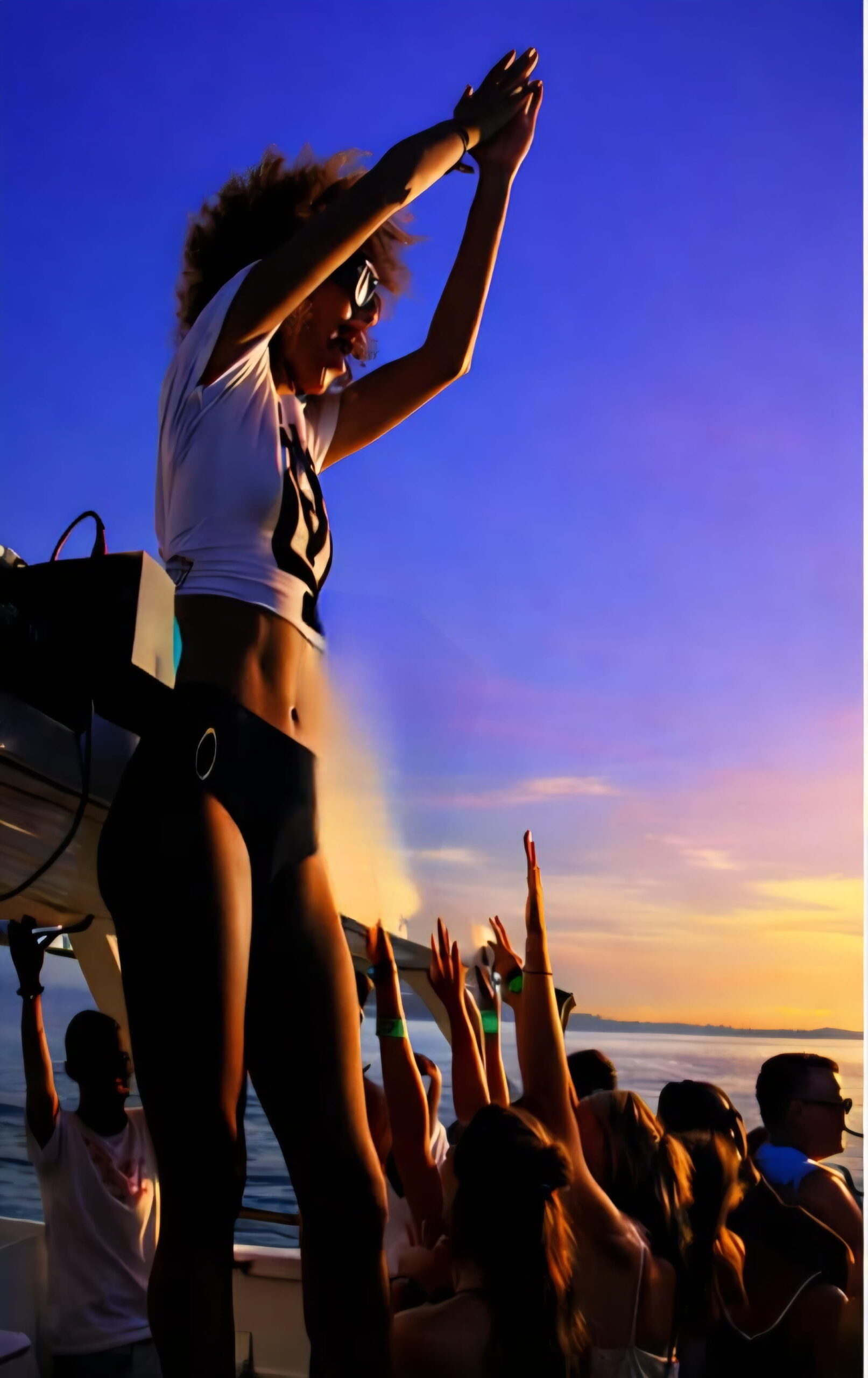 Get ready to experience the amazing Ibiza sunset boat party! Gather your friends and get ready for one of Ibiza’s legendary boat parties, where you’ll join fellow party-lovers for an unforgettable experience at sea. With an unbeatable party atmosphere and stunning coastal views, the boat comes alive with live performers, resident DJs and special guest appearances. There’s also a fully stocked pay bar on board, so you can keep the drinks flowing while you dance and soak up the incredible Ibiza vibes. Plus a swim stop in the beautiful Mediterranean sea. From 2nd May to the end of SeptemberSailing on Tuesdays, Thursdays & SaturdaysDuration of 3hrs: 6pm – 9pm.Check in & pre party at RIO IBIZA at 4pm3 drinks per person includedAge: 18yrs+€65pp, with a low deposit and pay the balance on the dayOption to include O Beach next day entry ticket for only €10 more!MAX 300 guests on board.